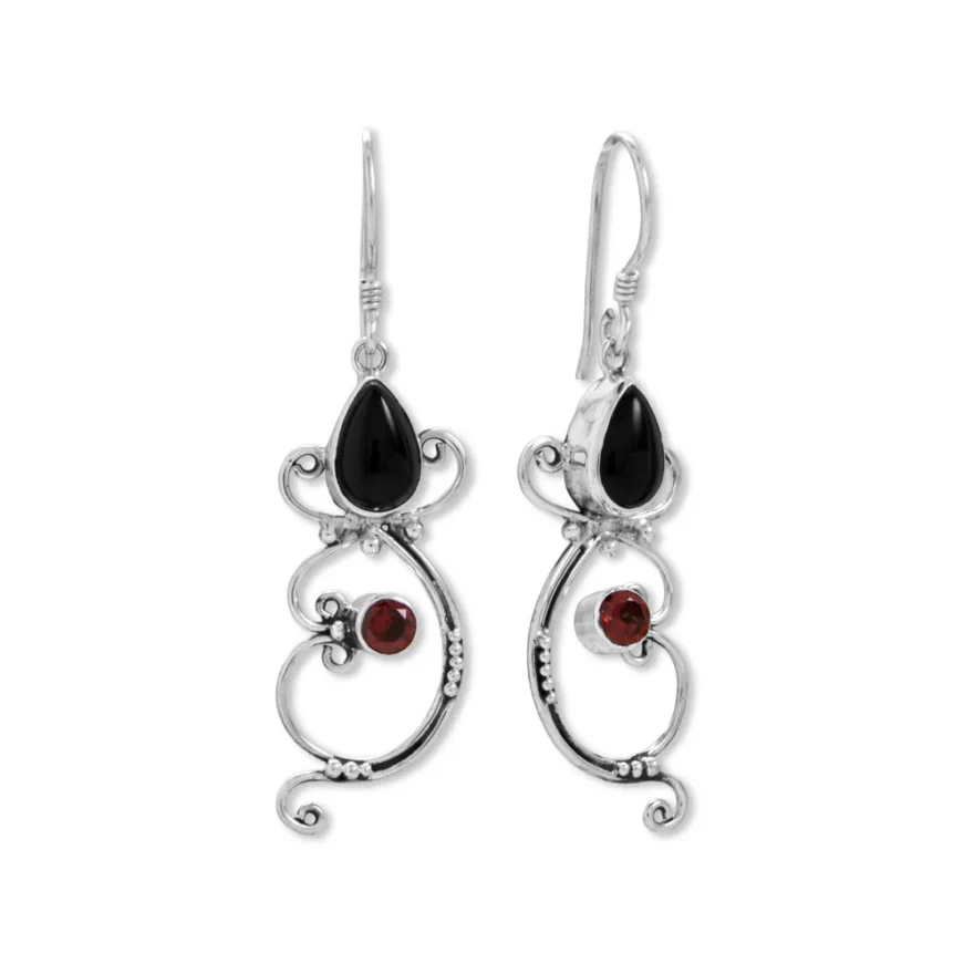 .925 Sterling Silver Black Onyx & Garnet Earrings 66864
