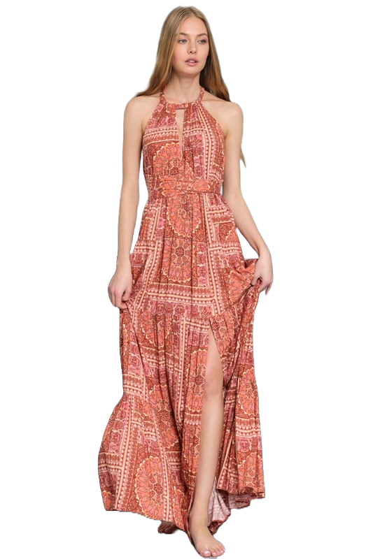 Aakaa Terracotta Tides Twist‑Tie Tiered Maxi Dress | Sun‑Baked Canyon Bloom