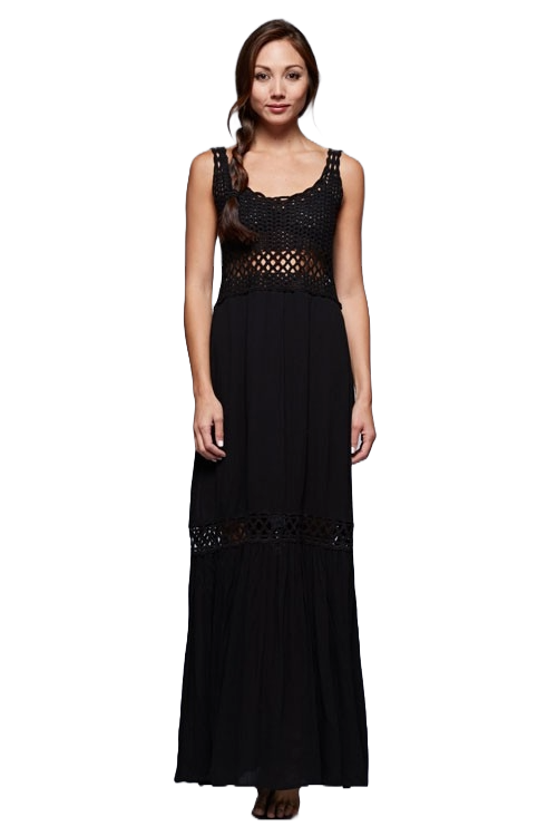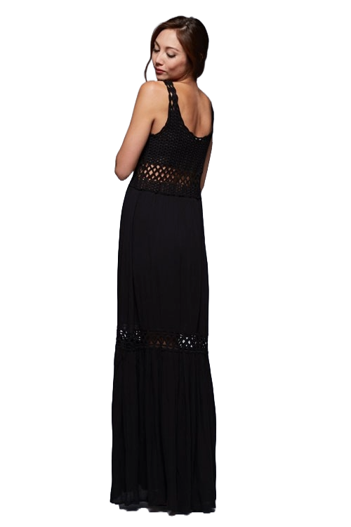 Lovestitch Obsidian Crochet & Gauze Maxi Dress | Moonlit Lace Reverie