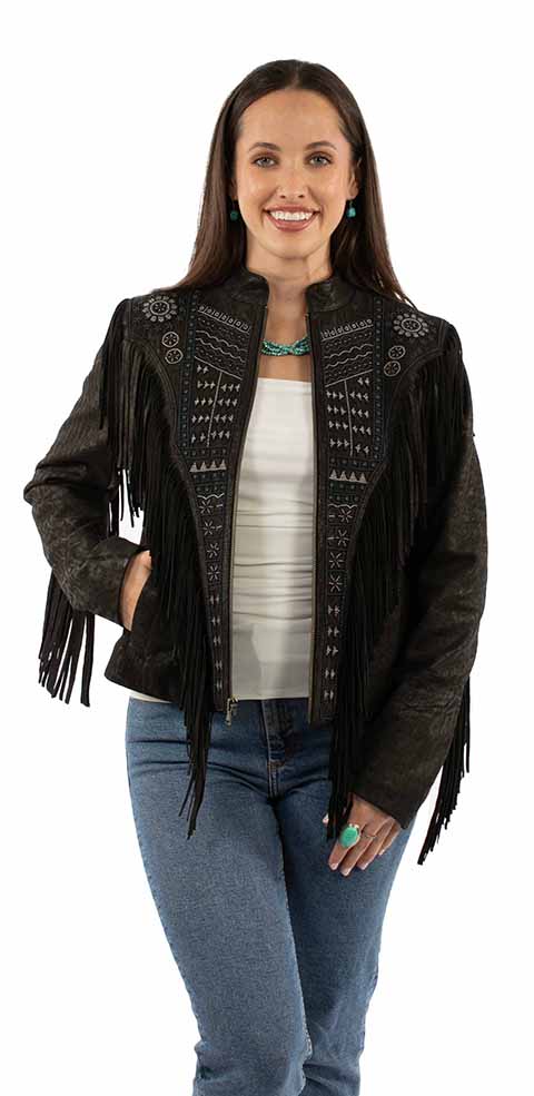 Scully Black Genuine Leather Fringed Jacket | Storm‑Sigil Shadow Relic