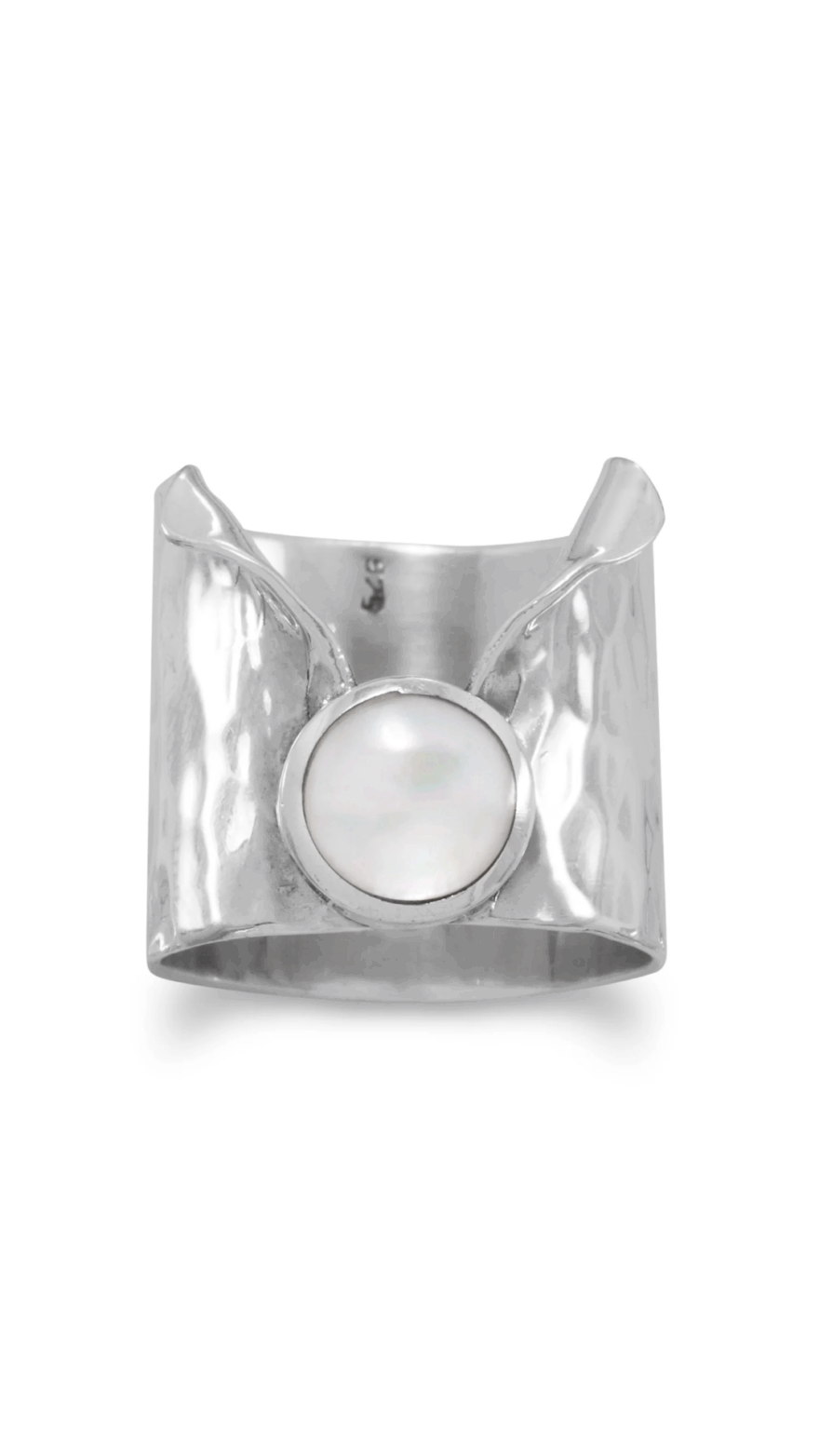 Selene Mother of Pearl Statement Ring | Hammered Sterling Silver