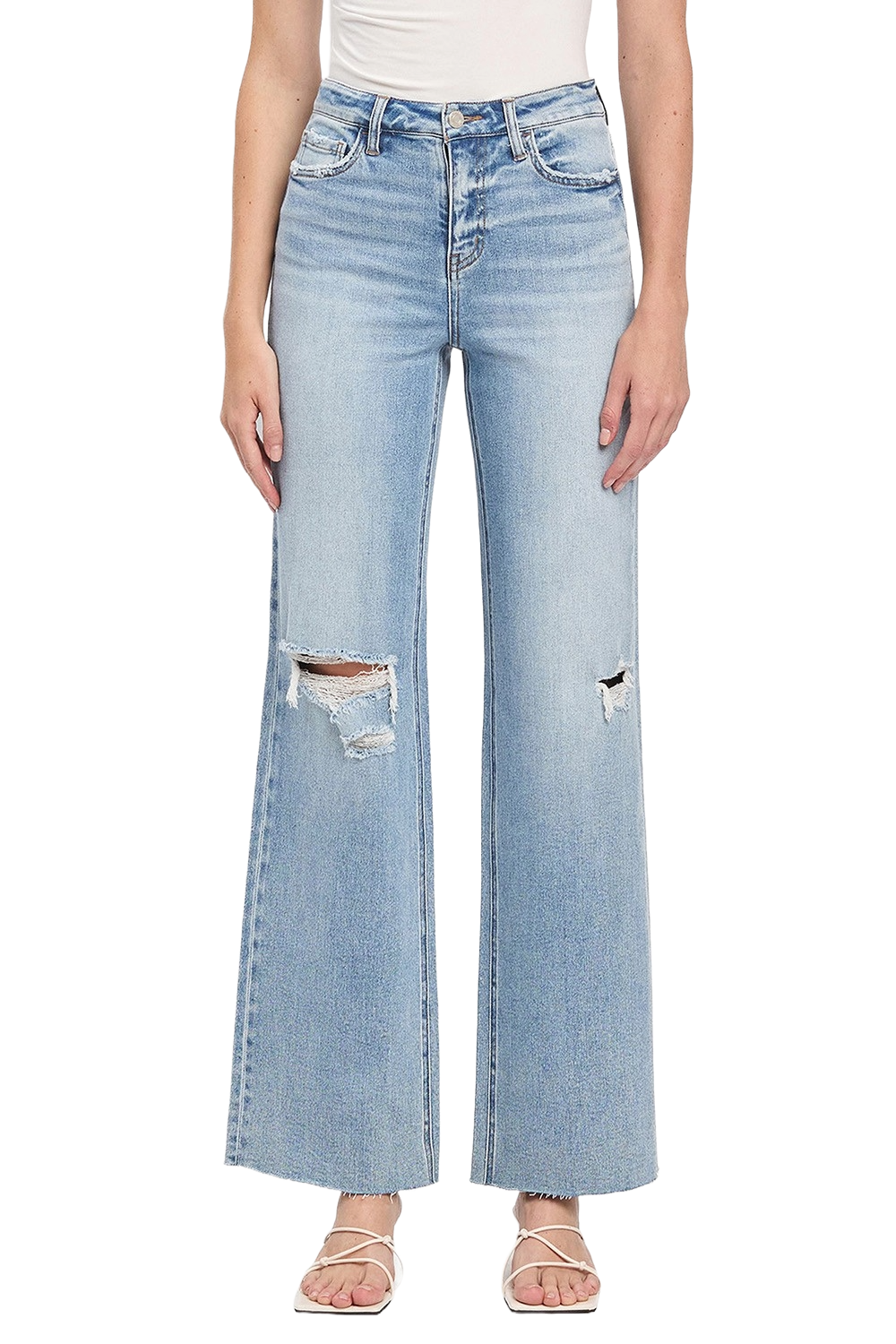 VERVET Refulgent High‑Rise Wide Leg Jeans | Light‑Wash Sculpted Ease